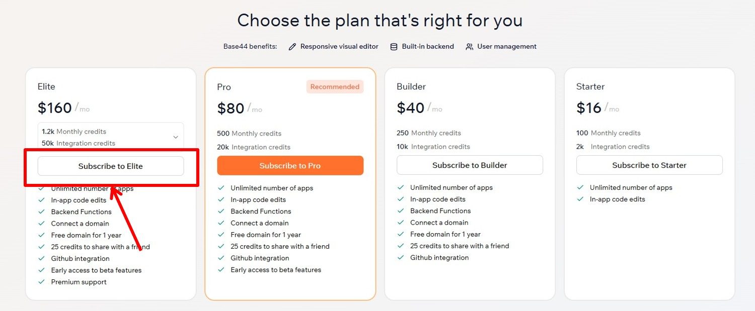 今回はEliteプランの「Subscribe to Elite」をクリックします。
