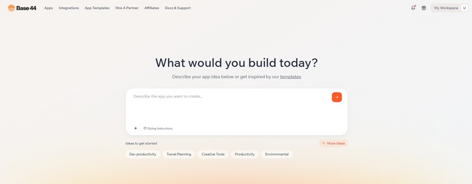 Base44 は自然言語による入力でアプリを素早く生成できます。