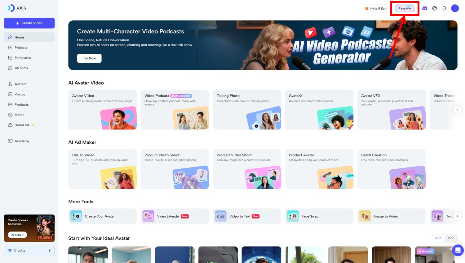 JoggAIのダッシュボードに移動します。