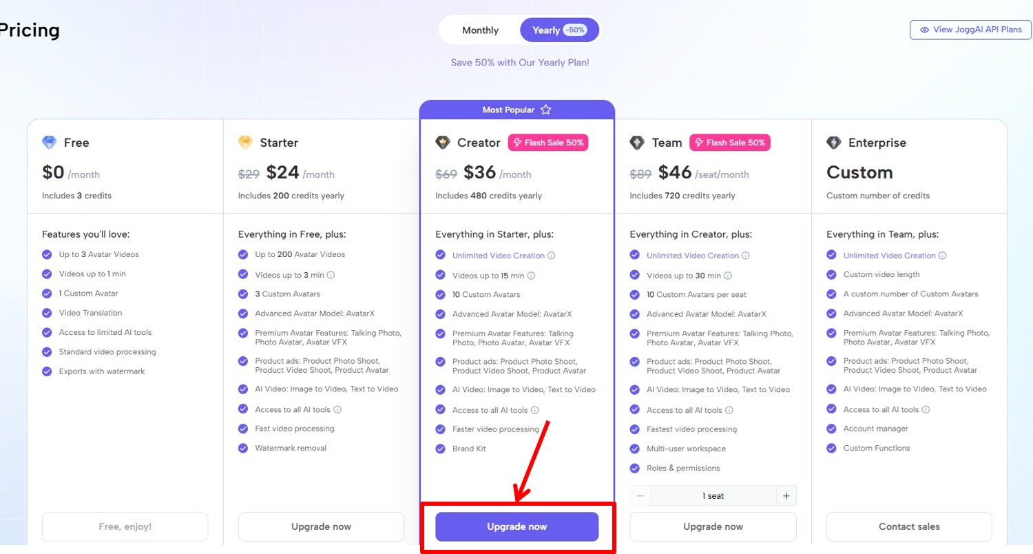 JoggAIは手軽に始められる反面、プランによって動画の長さや生成回数に上限があります。