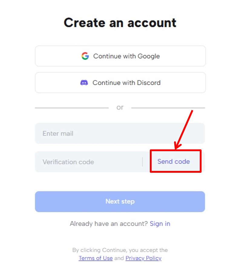 「Send code」をクリックします。