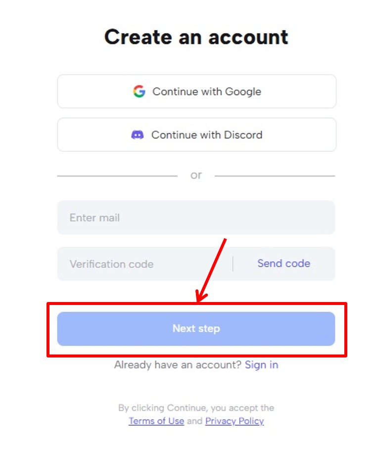 「Next step」をクリックします。