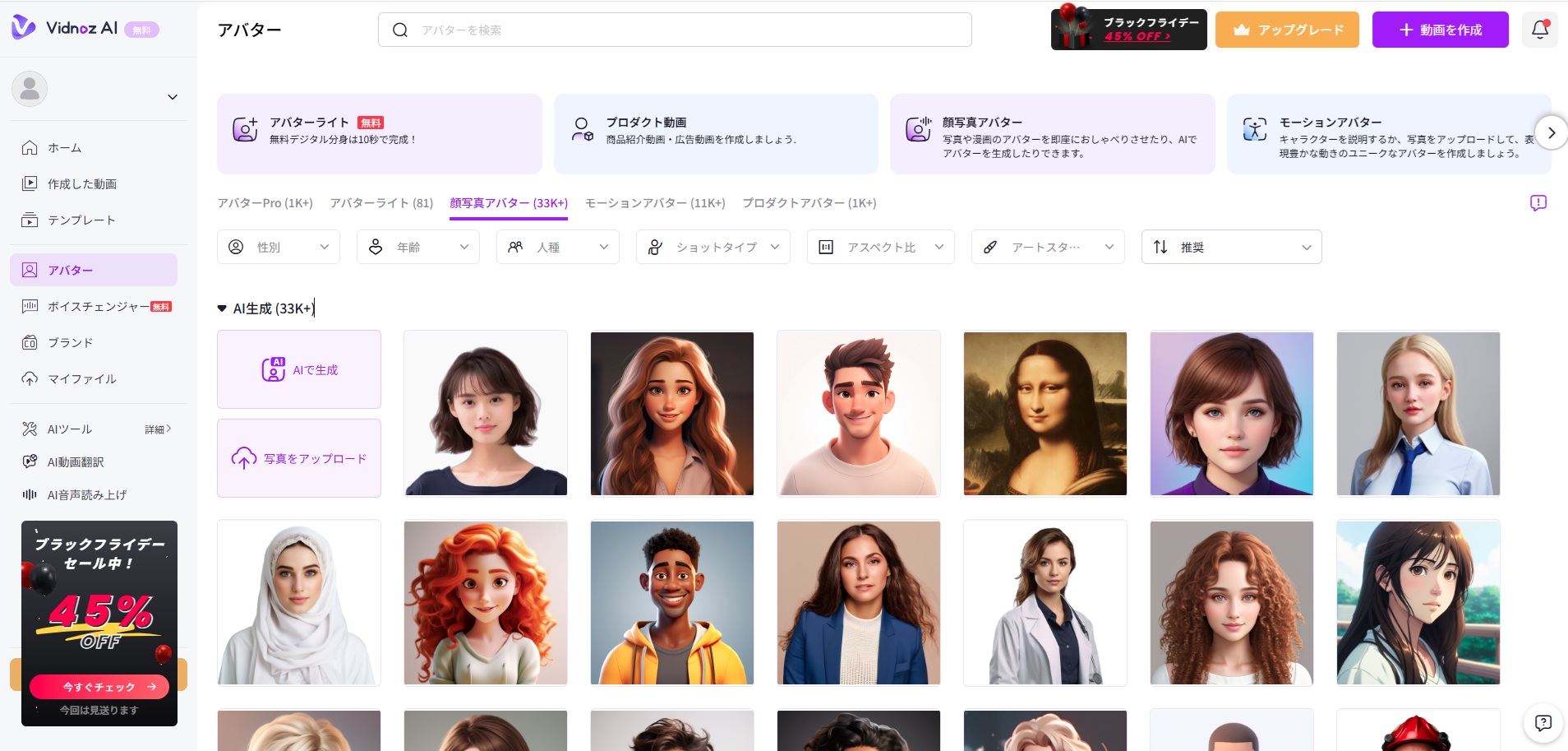 Vidnoz: 無料枠でアバター化を試せるため最初に試すべきツールです。