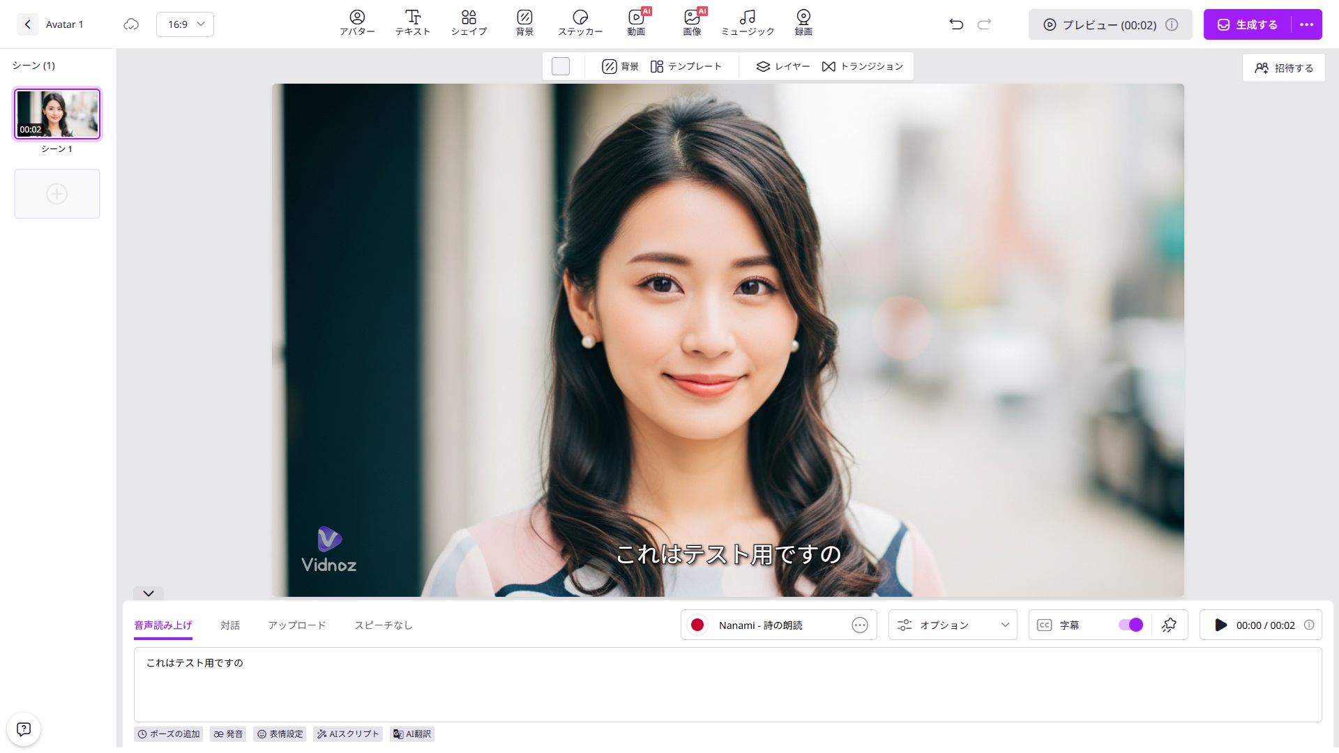 「人間よりも正確で人間に近い」質のナレーションを先に用意してからVidnozなどのAI動画ツールに読み込ませて動画を作成してください。
