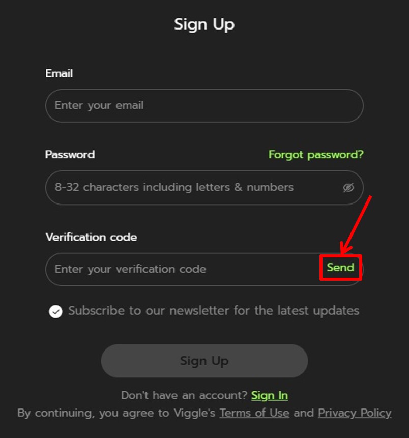 メールに届いた認証コードを入力し「Sign Up」をクリックします。
