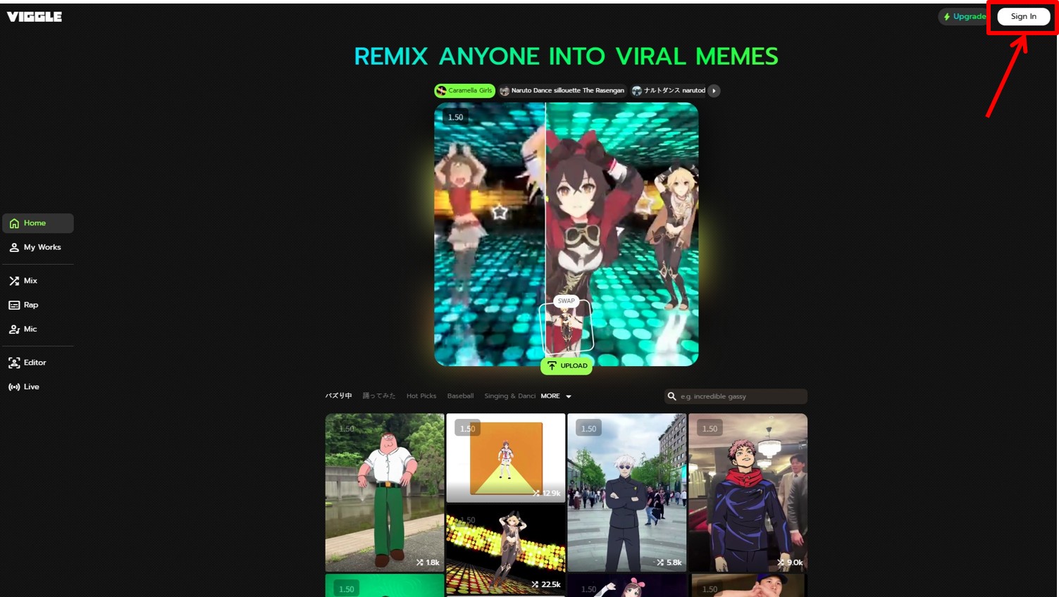 まずはViggle AIの公式サイトにアクセスし、動画作成の準備を整えましょう。