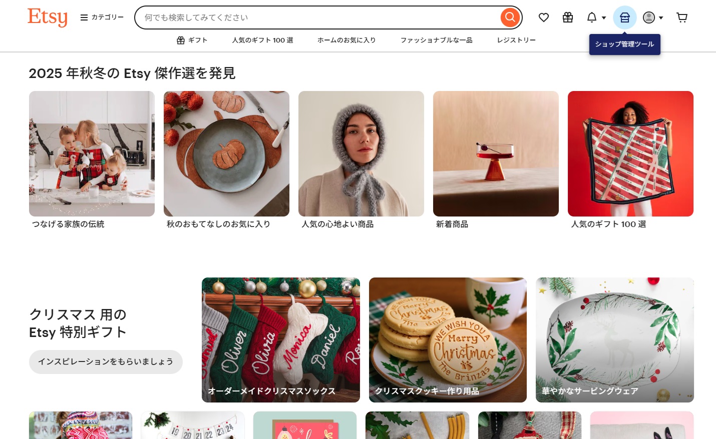 Etsyの管理画面の「ショップ管理ツール」をクリックします。