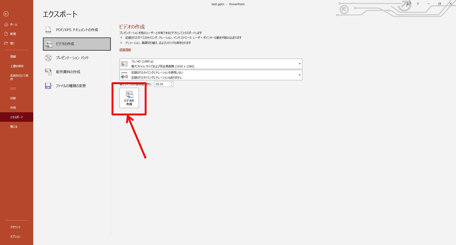 そうすると「ビデオの作成」という項目が現れるのでそれをクリックします。