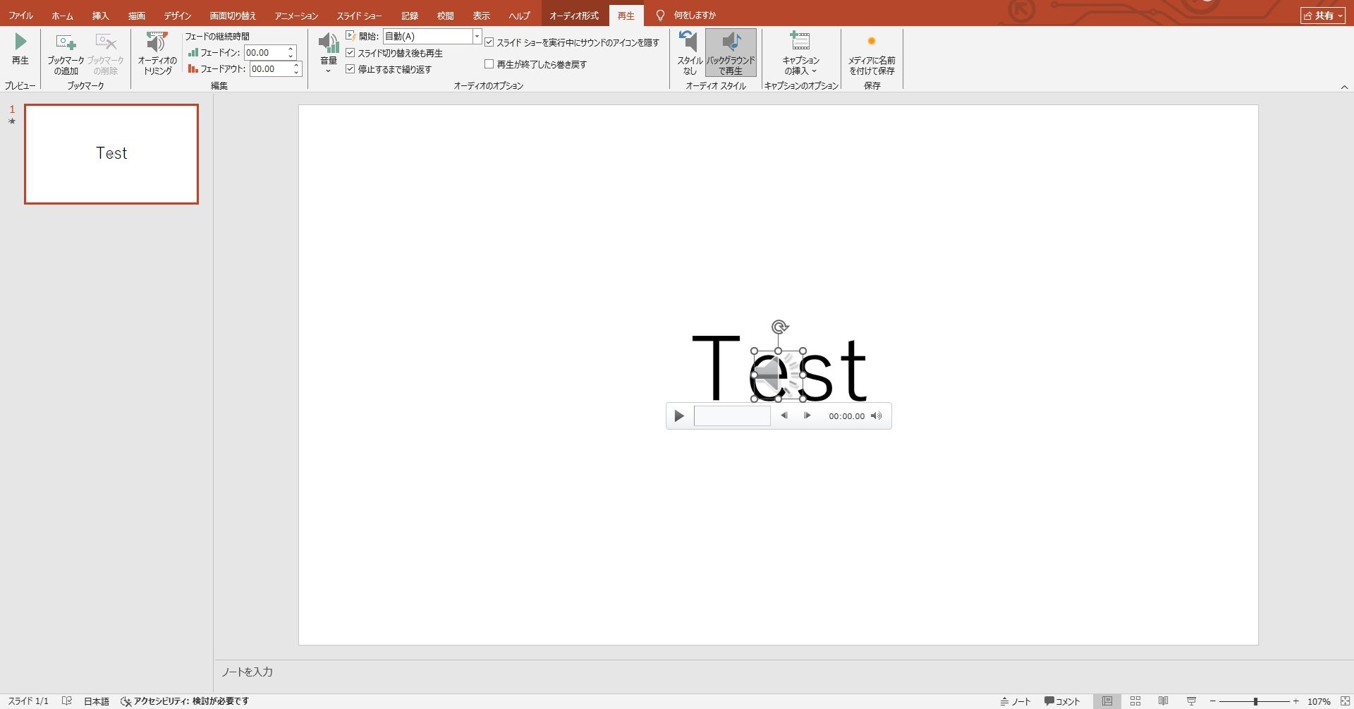 再生設定を「バックグラウンドで再生」にすれば全スライドにBGMが流れます。