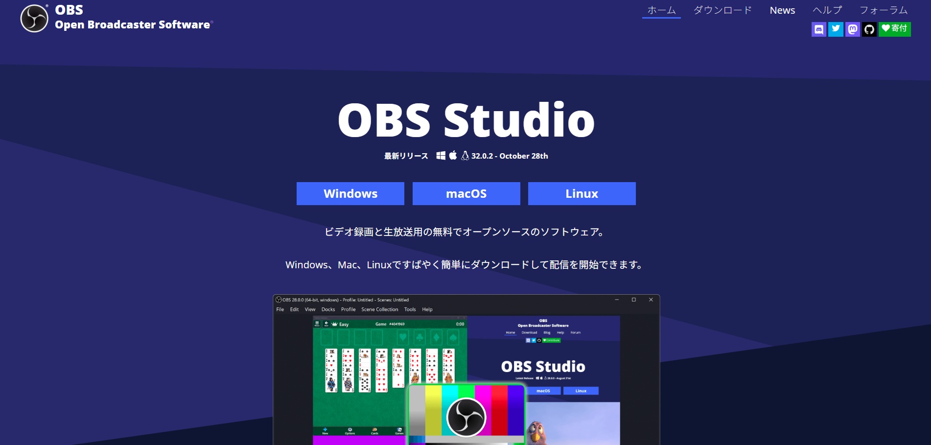 OBS Studioは多くの動画配信者が利用する無料の録画・配信ソフトです。