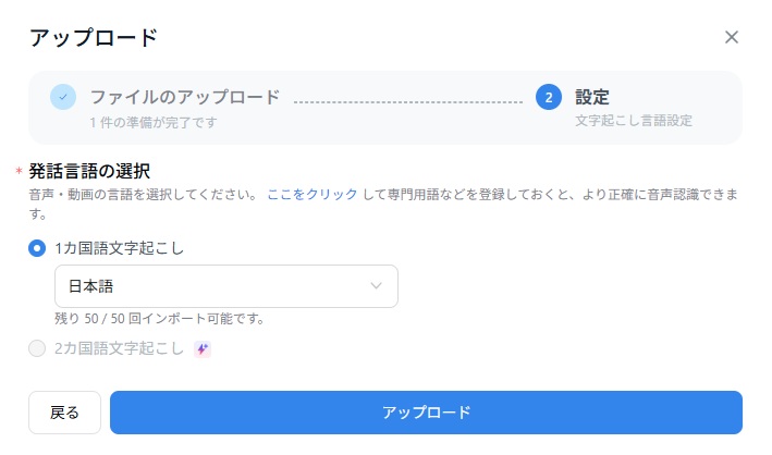 文字起こしの言語設定を行います。