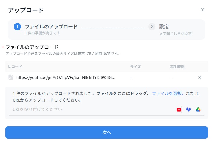 「次へ」をクリックすると自動的に文字起こしが始まります。
