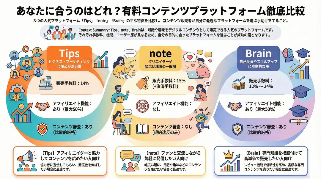 Tips・note・Brain徹底比較|AIで稼ぐなら選ぶべきは?手数料・アフィリエイトで完全格付け