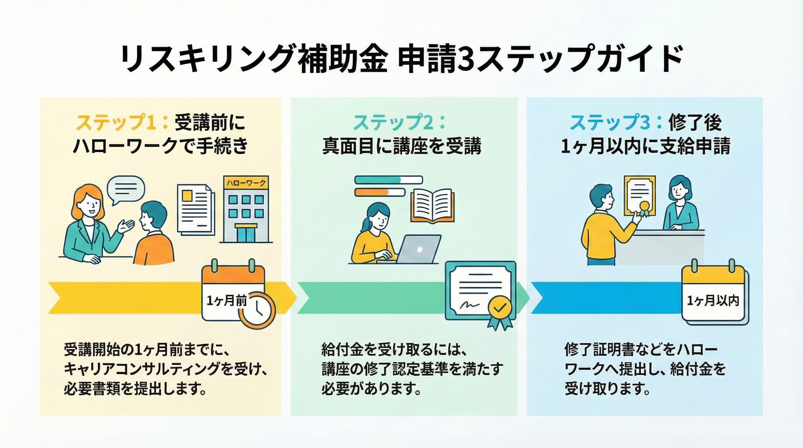 リスキリングを通じたキャリアアップ支援事業とは?個人・フリーランスの申請方法、条件、講座選びを徹底解説 2026.01.03